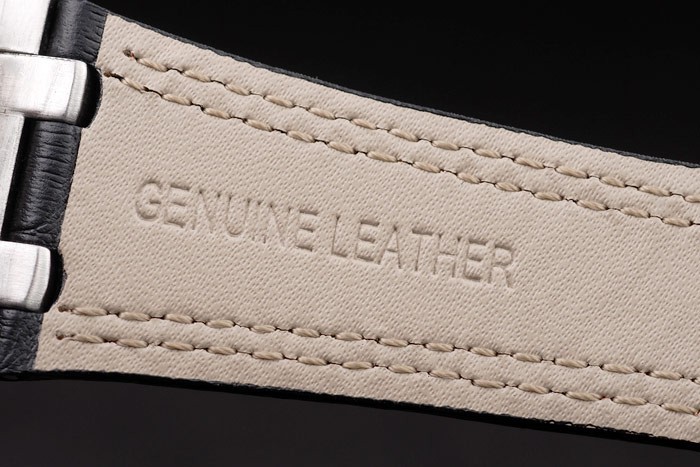 Armband: Hitze geprägt Audemars Piguet schwarzem Krokolederarmband mit Doppel roten Nähten und Audemars Piguet graviert gebürsteten Edelstahl Einfalt-clasp