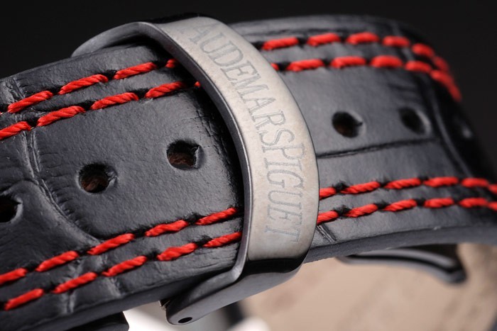 Armband ionenplattiert: Hitze Audemars Piguet schwarzem Krokolederarmband mit Doppel roten Nähten und Audemars Piguet geprägt graviert ionenplattiert Einfalt-clasp