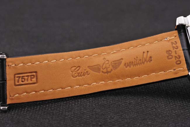Armband: Schwarz hochwertigem Leder in Krokodilmuster mit schweren weißen Baumwollnähende. Tan Innenband ist mit dem Breitling Namen und das Logo geprägt und hat eine Schnalle aus Stahl closure.