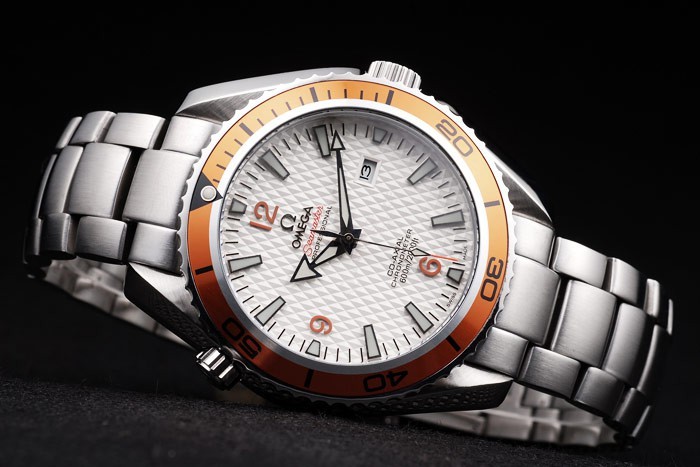 Krone: Edelstahl gebürstet cutwork Krone mit Omega-logo sowie eine zusätzliche Krone auf der gegenüberliegenden oberen corner
