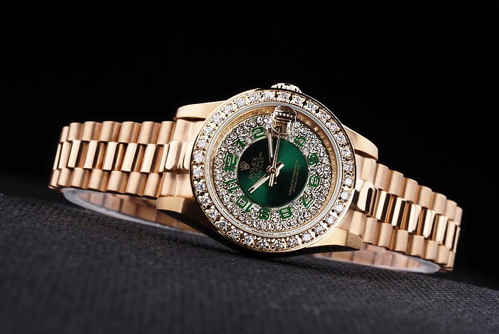 Zurück: 18K Gelbgold überzogenes Edelstahl-Steckgehäuseboden mit grünen Rolex-Logo stamp