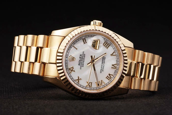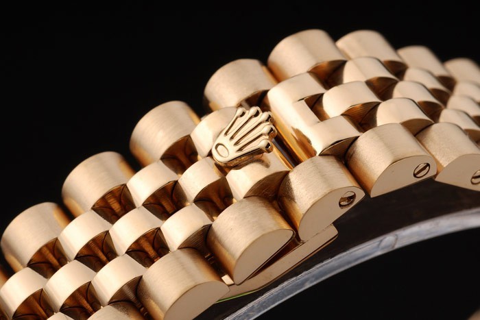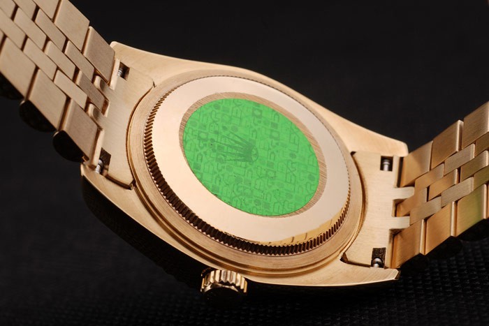 Back: in 18 Karat Gelbgold mit grünen Rolex Aufkleber nach hinten schieben und markings