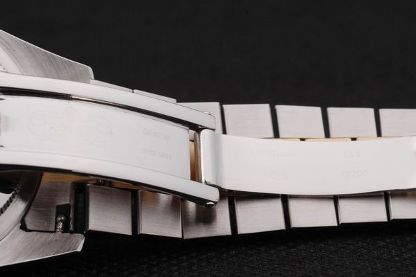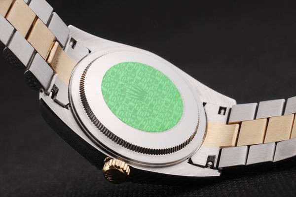 Back Bewegung: Push-in Edelstahl zurück mit grünen Rolex Aufkleber und markings