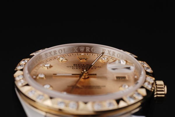 Lünette: verzierte Diamant-18K Gelbgold Lünette mit schwarzen Pfeilen, um die Stunden