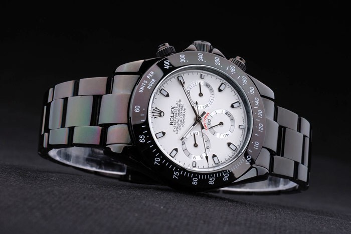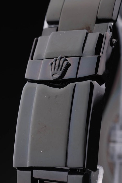 Armband: Schwarz Edelstahl-Gliederarmband mit Rolex Gravur Faltschließe Anzeige Rolex logo