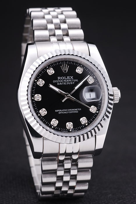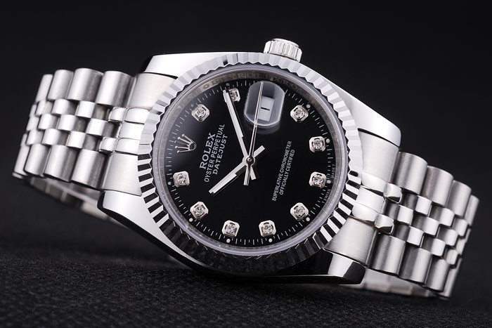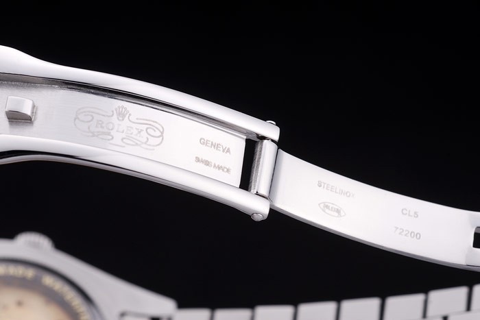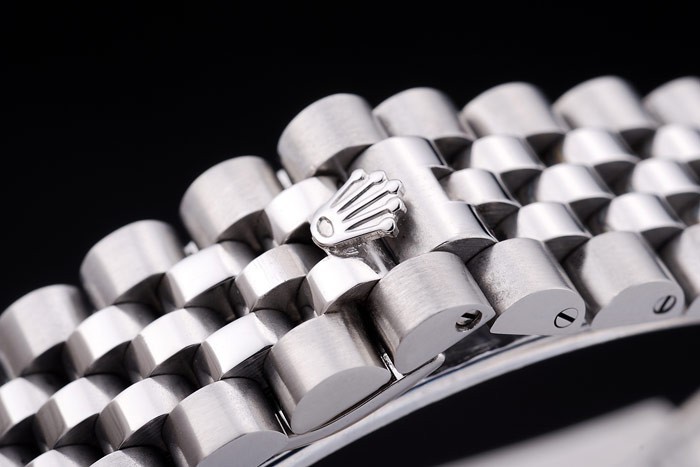 Armband: geschliffener und polierter Edelstahl-Gliederarmband mit Rolex-Logo versteckt clasp