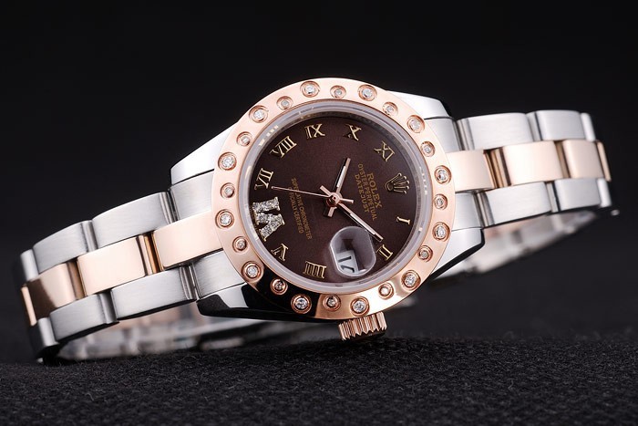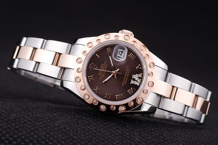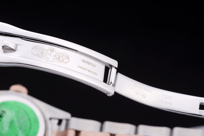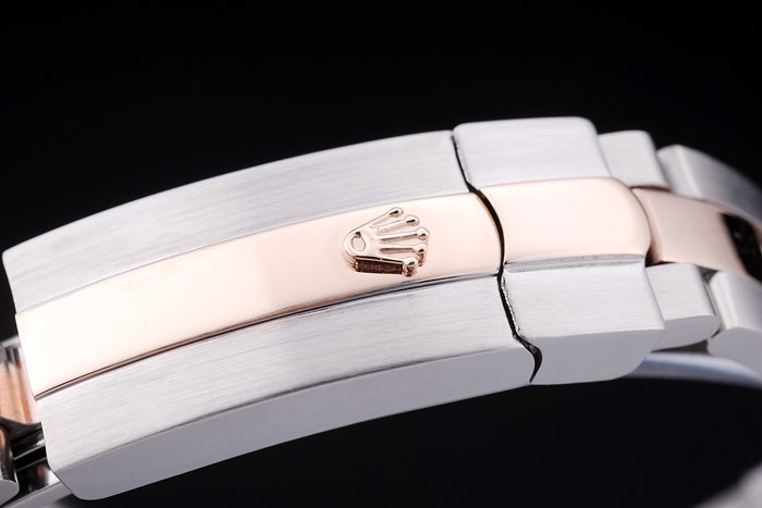 Armband: Edelstahl gebürstet und Rose-Gold-Gliederarmband mit Rolex-Logo Einsatz clasp