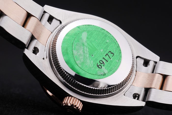 Rückseite: Edelstahl-Snap-In Rückseite mit grünen Rolex Authentizität sticker