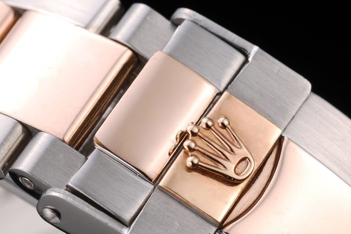 Armband: Rose-vergoldet und Edelstahl-Gliederarmband mit gravierter Faltschließe mit Rolex-Logo auf top